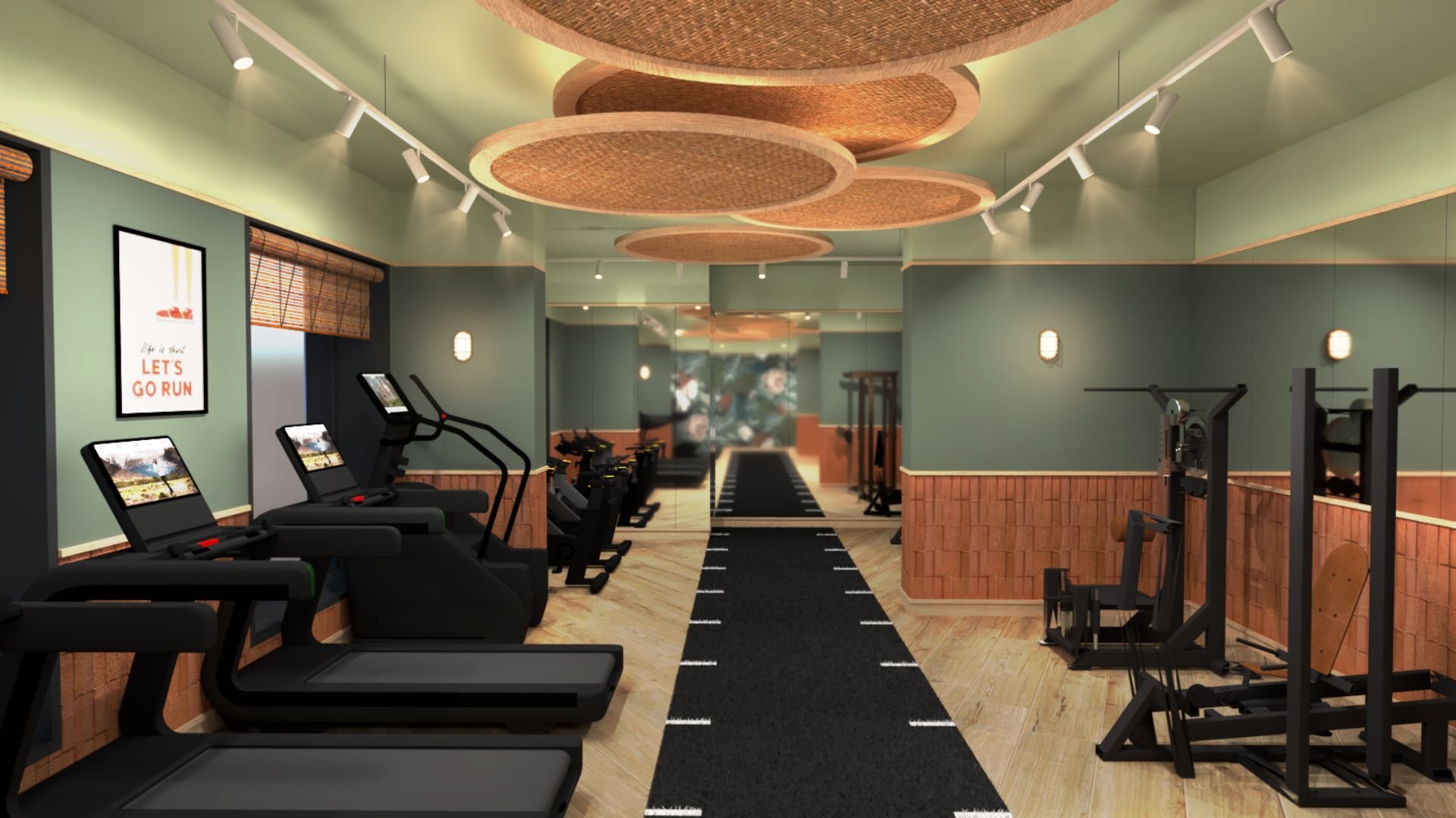 Our preferred biophilic design features in gyms include air purifying plants; natural lighting; the prioritization of natural materials such as cork, bamboo, wood and virgin rubber; wellbeing aromatherapy; wellness sounds, and natural colors to create a multi-sensory gym interior.